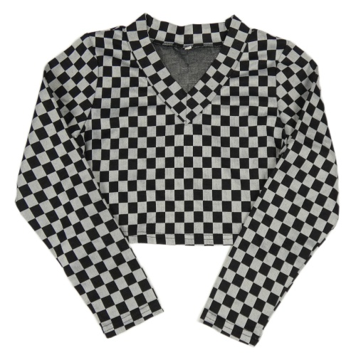 Černo-bílé kostkované crop triko Shein