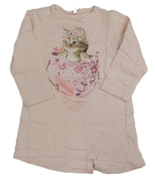 Světlerůžové dlouhé triko s kočkou a 3/4 rukávem