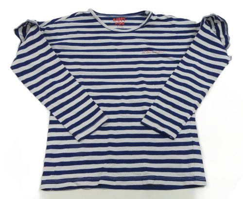 Bílo-tmavomodré pruhované triko s volánky Tchibo