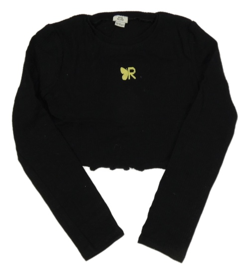 Černé žebrované crop triko s výšivkou River Island