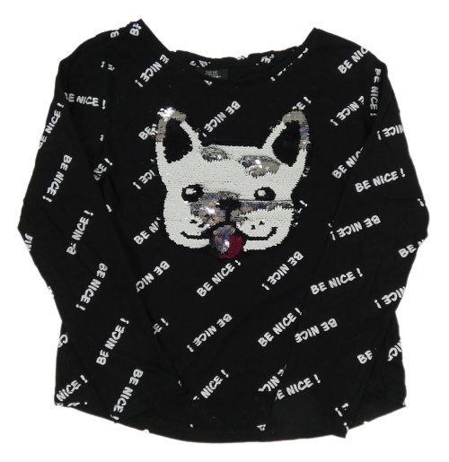 Černé crop triko s pejskem z překlápěcích flitrů a nápisy Page one young