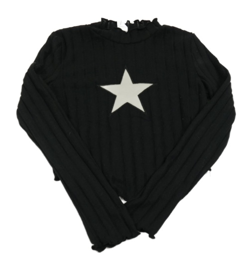 Černé žebrované úpletové crop triko s hvězdou Shein
