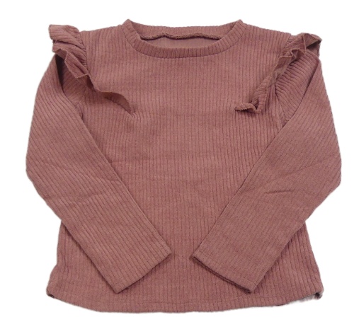 Starorůžové žebrované úpletové triko s volánky