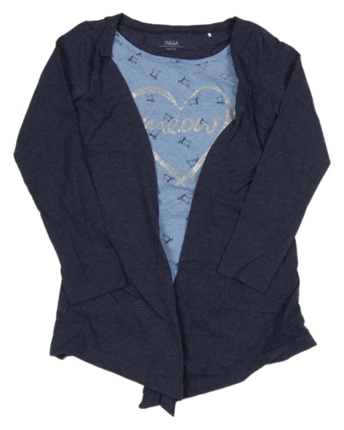 Tmavomodro-modrý bavlněný cardigan s všitým torkem s kočkami a srdcem Yigga