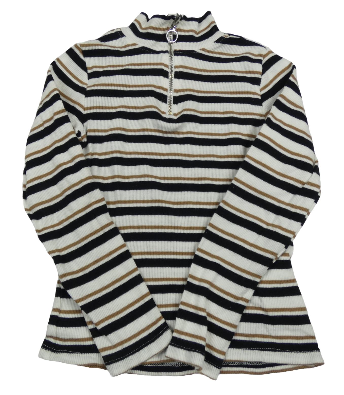 Bílo-hnědo-černé pruhované žebrované triko Page one young