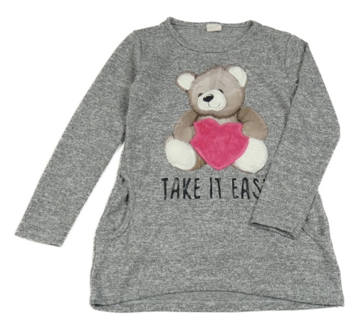 Šedá melírovaná lehká svetrová tunika s medvídkem