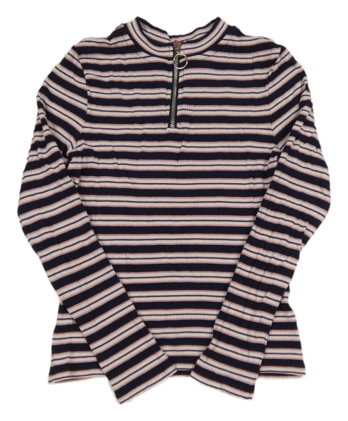 Tmavomodro-bílo-růžovo-vínové pruhované žebrované triko se zipem S. Oliver
