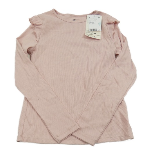 Nové - světlerůžové žebrované triko s volánky H&M
