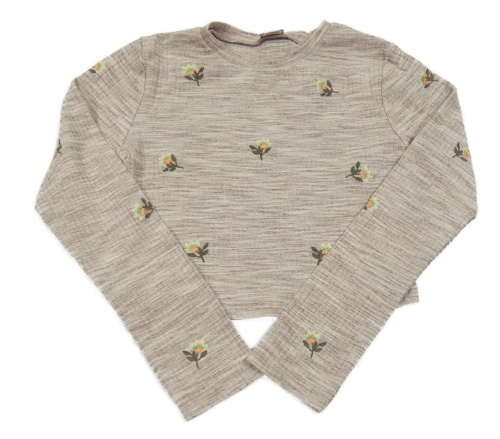 Hnědé melírované žebrované crop triko s výšivkami květin River Island