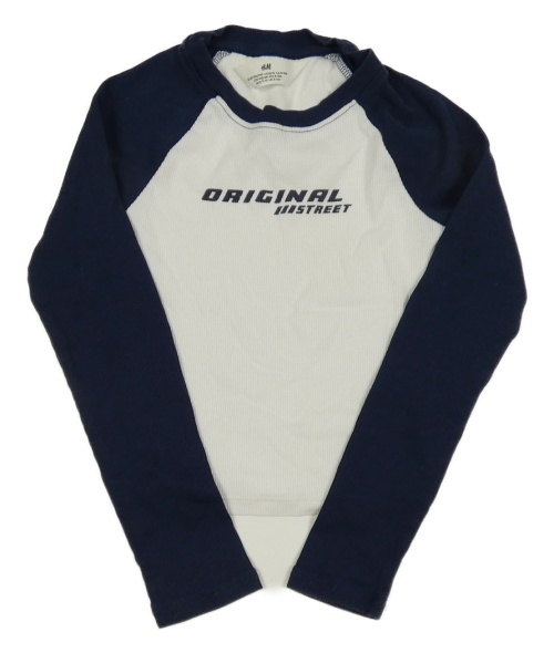 Bílo-tmavomodré žebrované crop triko s nápisy H&M