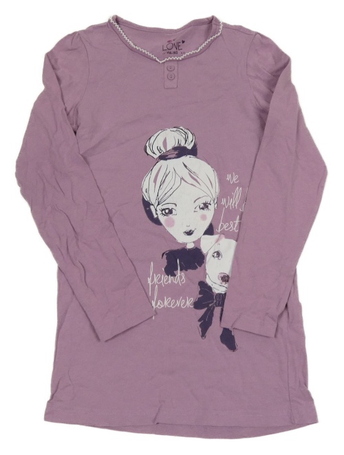 Světlefialová tunika s dívkou a pejskem a nápisy TCM