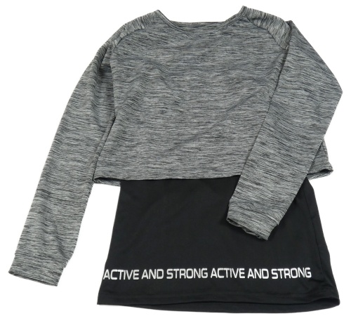 Šedé melírované sportovní crop triko s všitým sportovním topem s nápisy Ergeenomixx