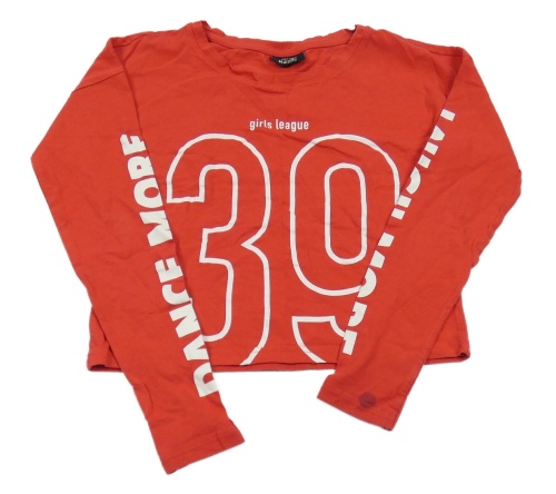 Červené crop triko s číslem a nápisy Page one young