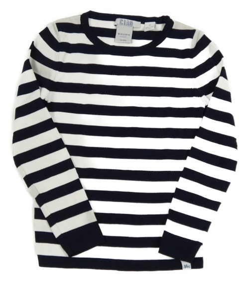 Tmavomodro-bílé pruhované úpletové triko
