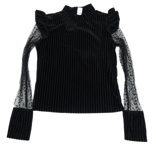 Černé žebrované sametové crop triko s tylovými rukávy Shein