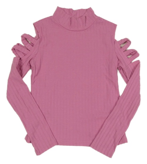 Růžové žebrované triko s volnými rameny Shein