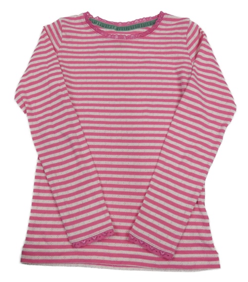 Růžovo-bílé pruhované perforované triko s krajkou Boden