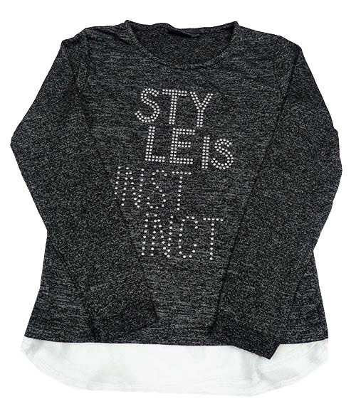 Černo-šedé melírované úpletové triko s nápisem z kamínků