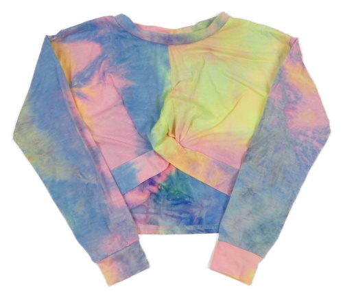 Neonově žluto-růžovo-modré batikované crop triko