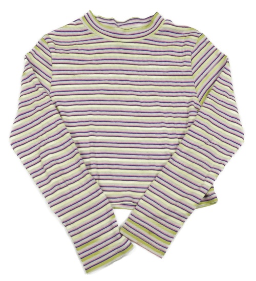 Zeleno-bílo-růžové pruhované žebrované crop triko H&M