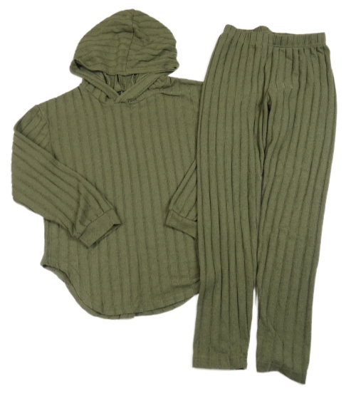 2set- khaki žebrované úpletové triko s kapucí+ tepláky Shein