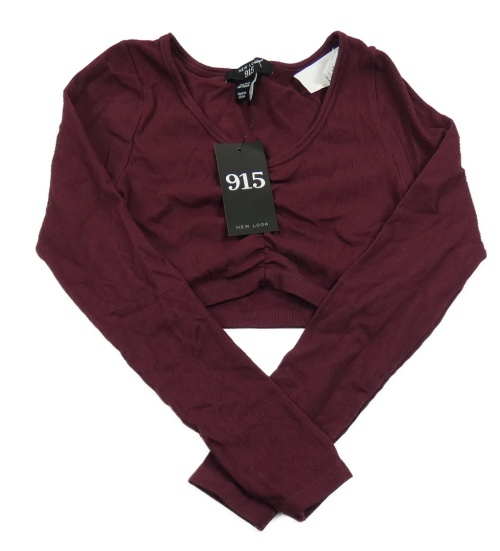 Nové - vínové žebrované crop triko s nařasením New Look