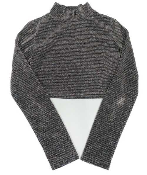 Šedo-barevné třpytivé crop triko se stojáčkem