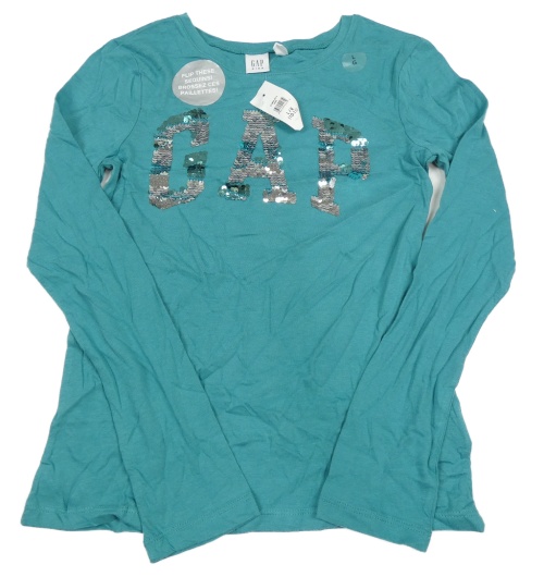Nové - modrozelené triko s logem z překlápěcích flitrů GAP