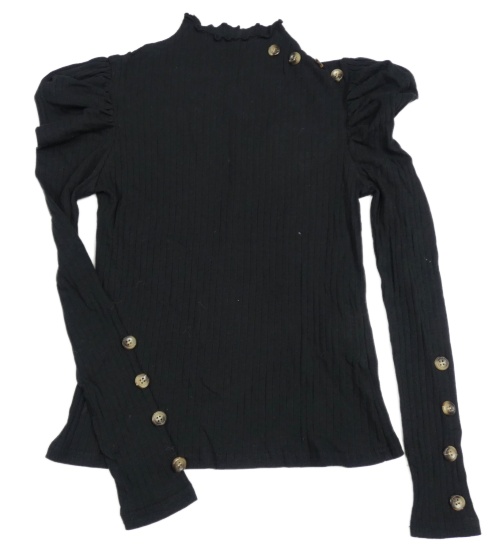 Černé žebrované triko s knoflíčky Shein