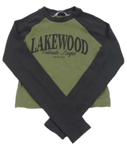 Khaki-tmavošedé žebrované crop triko s nápisy H&M