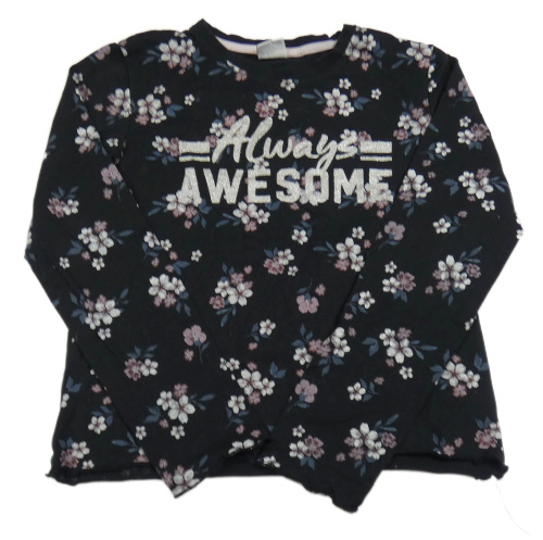 Černé crop triko s kytičkami a nápisem Y.F.K.