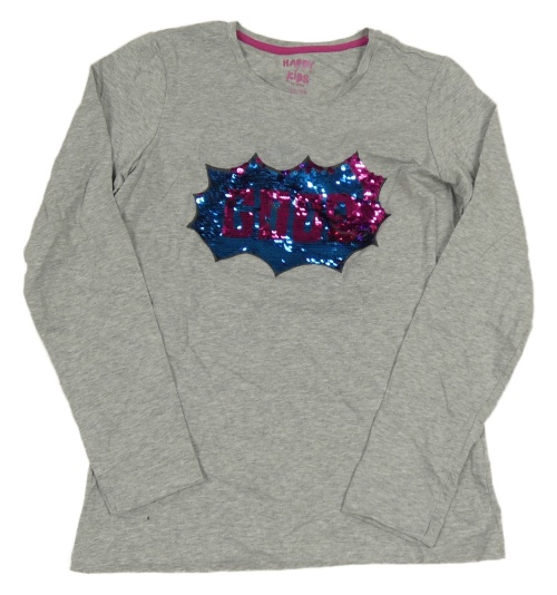 Šedé melírované triko s nápisem z flitrů Tchibo