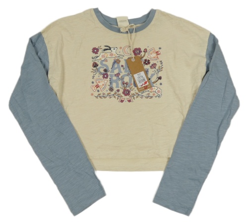 Nové - Béžovo-modrošedé crop triko s králíky a ptáčky Saltrock