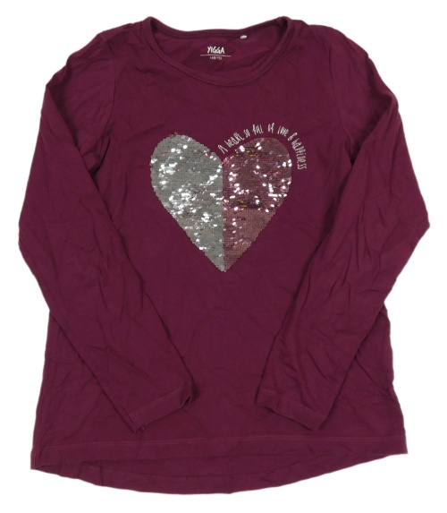 Tmavovínové triko se srdíčkem z překlápěcích flitrů a nápisem YIGGA