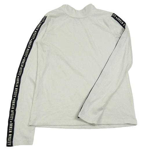 Bílé žebrované triko se stojáčkem a pruhem na rukávech s nápisy C&A