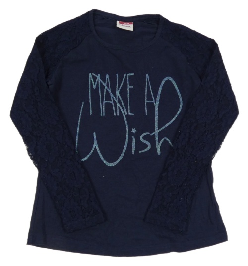 Tmavomodré triko s nápisy a krajkovými rukávy Yigga