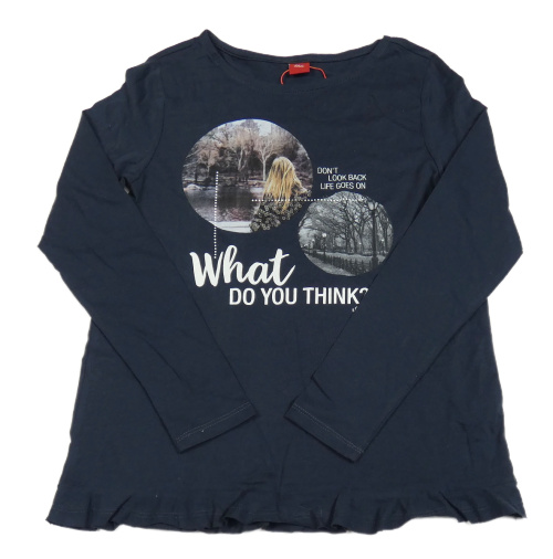 Tmavomodré triko s obrázky a nápisy S. Oliver