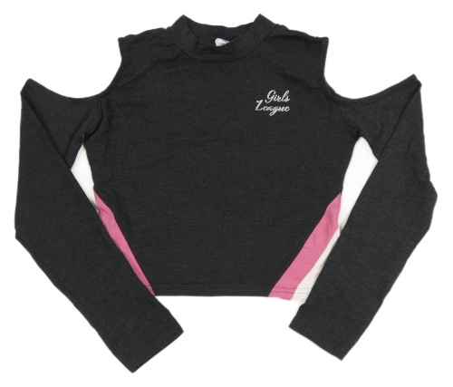 Tmavošedo-růžové crop triko s nápisem Chapter young