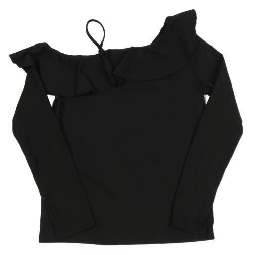 Černé žebrované triko s volánkem Shein