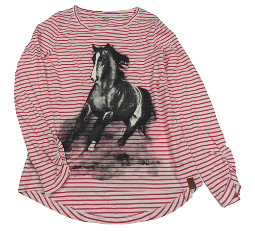 Bílo-červené pruhované triko s koněm Yigga
