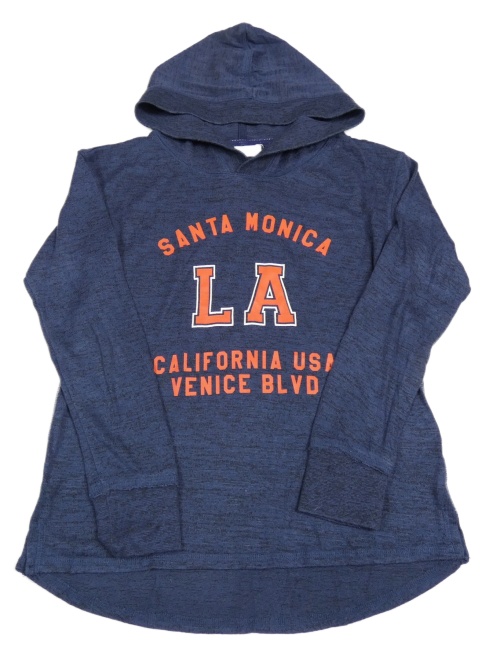 Tmavomodré melírované úpletové triko s nápisem a kapucí H&M