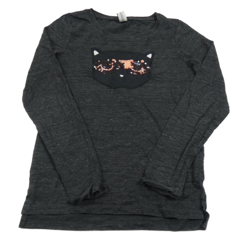 Černé melírované triko s kočkou s překlápěcími flitry Yigga