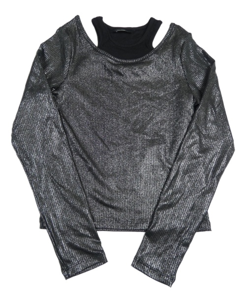 Černo-stříbrné třpytivé žebrované crop triko s všitým topem George