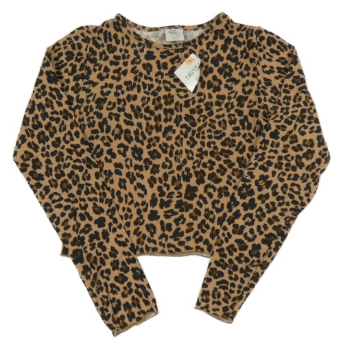 Nové - Béžovo-hnědo-černé vzorované žebrované crop triko