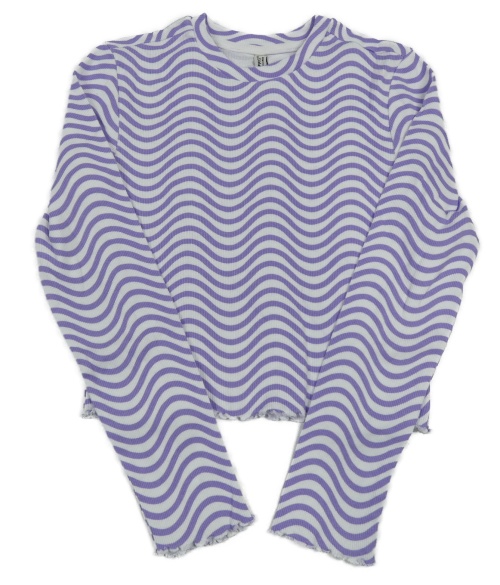 Fialovo-bílé vzorované žebrované crop triko BLUE EFFECT