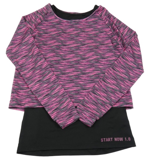 Neonově růžovo-černo-šedé melírované sportovní crop triko s všitým topem Ergeenomixx