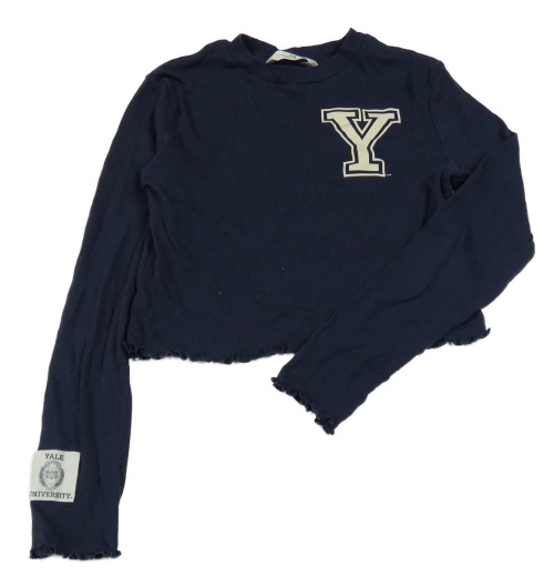 Tmavomodré žebrované crop triko s písmenem H&M