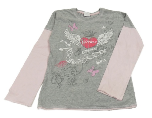 Světlešedo-růžové triko s nápisy a srdíčky