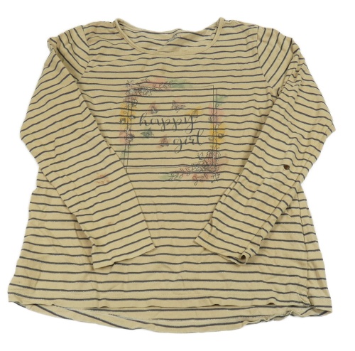 Béžovo-antracitové pruhované triko s nápisem a květy Yigga