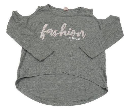 Šedé melírované triko s nápisem s korálky a průstřihy Y.F.K.
